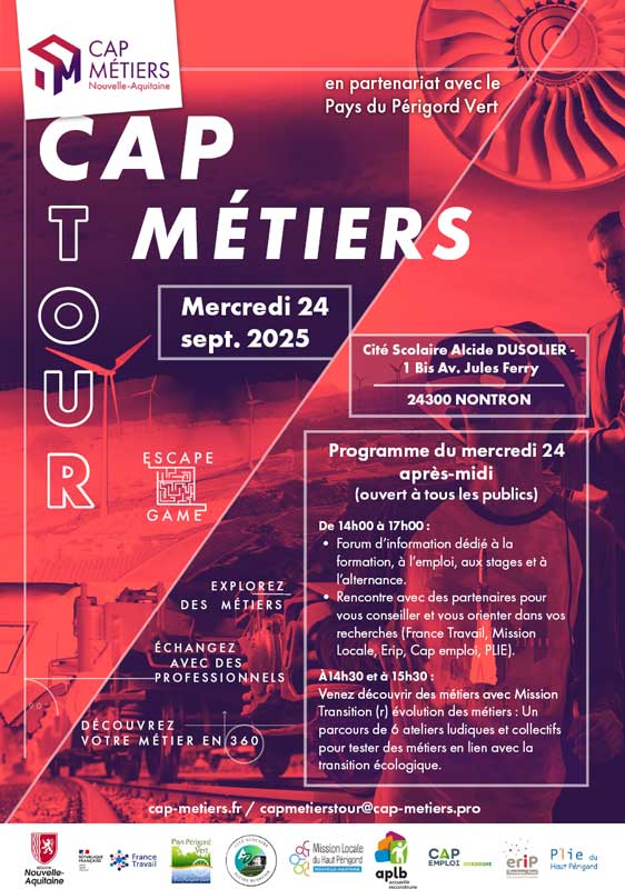 Merci à l’ensemble des partenaires et intervenants qui ont contribué à la réussite de cette belle étape du Cap Métiers Tour à Nontron !